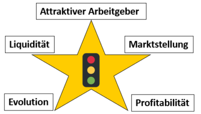 Unsere Erkenntnisse lassen sich im Kunstwort AMPEL zusammenfassen. Nachhaltig erfolgreiche Unternehmen haben in ihrer Entscheidungsfindung und bei der Umsetzung immer die AMPEL vor Augen: