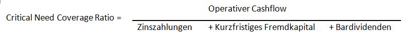 Die Critical Need Coverage Ratio liefert aus der externen Sicht einen Eindruck von der Zahlungsfähigkeit eines Unternehmens. Sie drückt aus, ob der operative Cashflow ausreicht, alle zeitkritischen Zahlungen eines Unternehmens leisten zu können.
